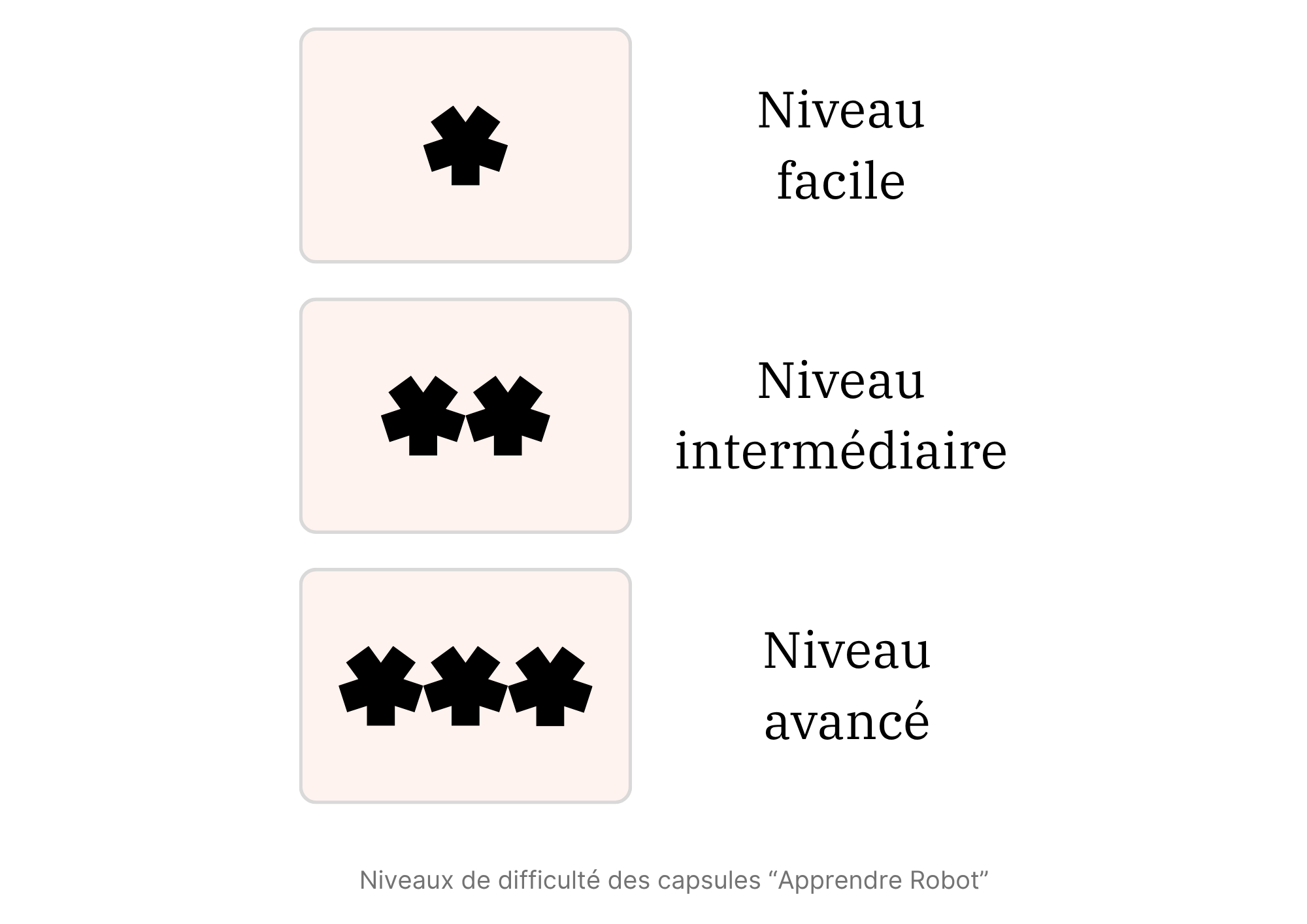 Chaque capsule est associée à un niveau de difficulté.